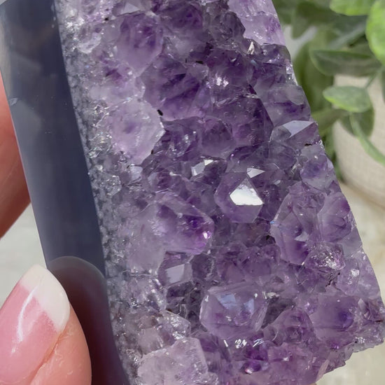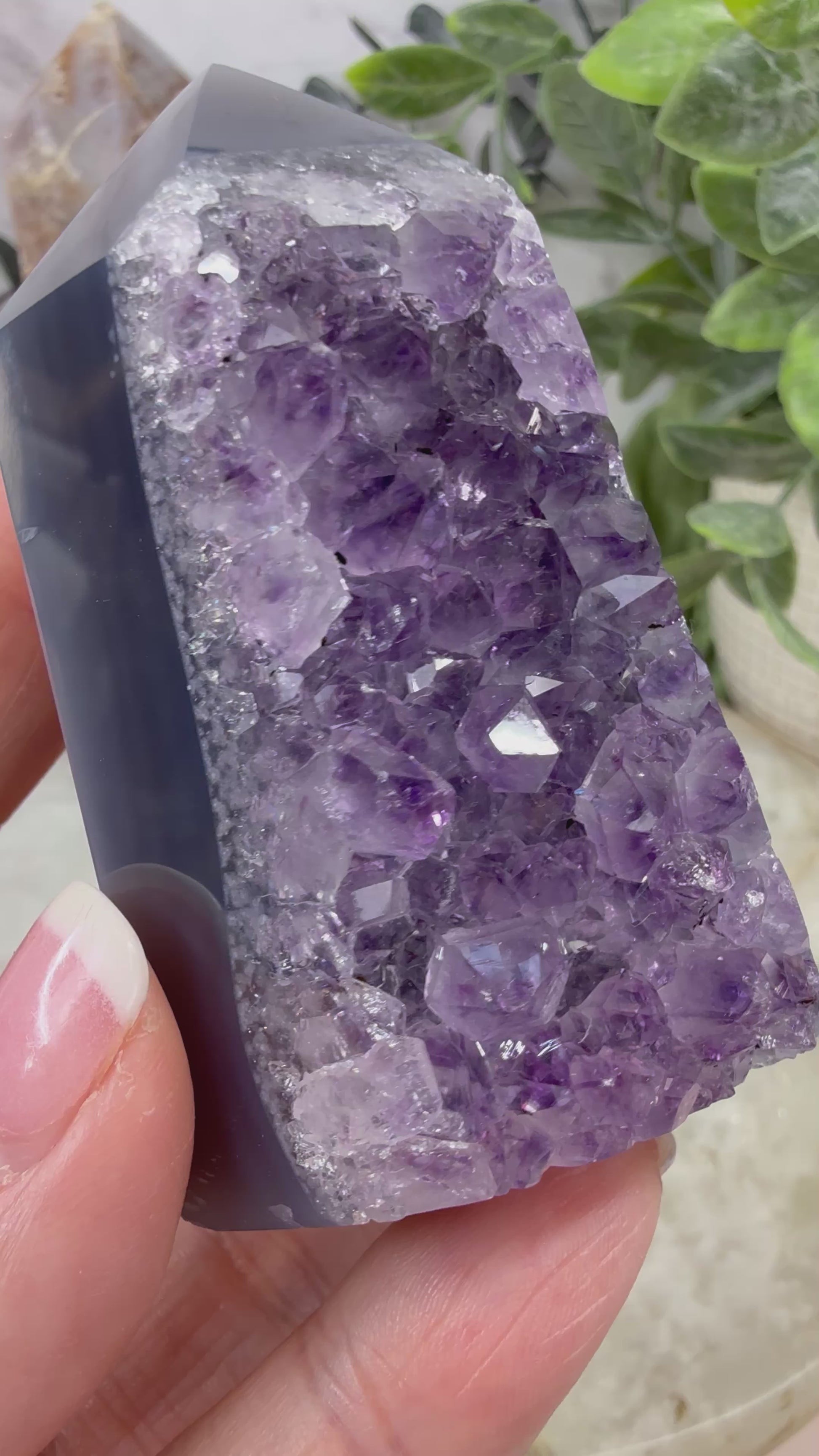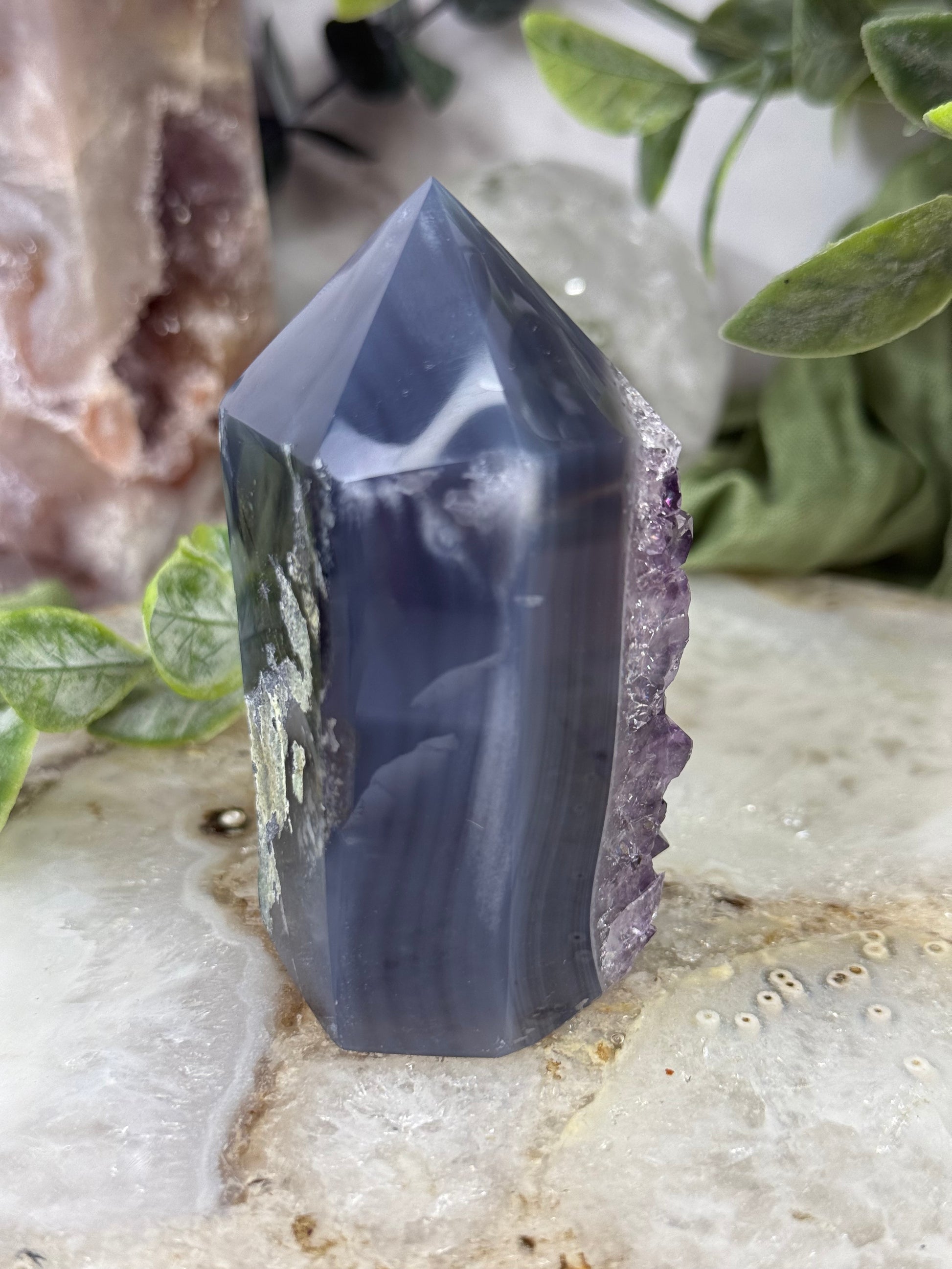 Indulge in the calming energy of our amethyst blue agate tower. The natural amethyst agate is a stunning addition to any room, and its unique shape adds a touch of elegance. Enjoy the benefits of its soothing powers, promoting relaxation and balance. Perfect for any crystal collection!