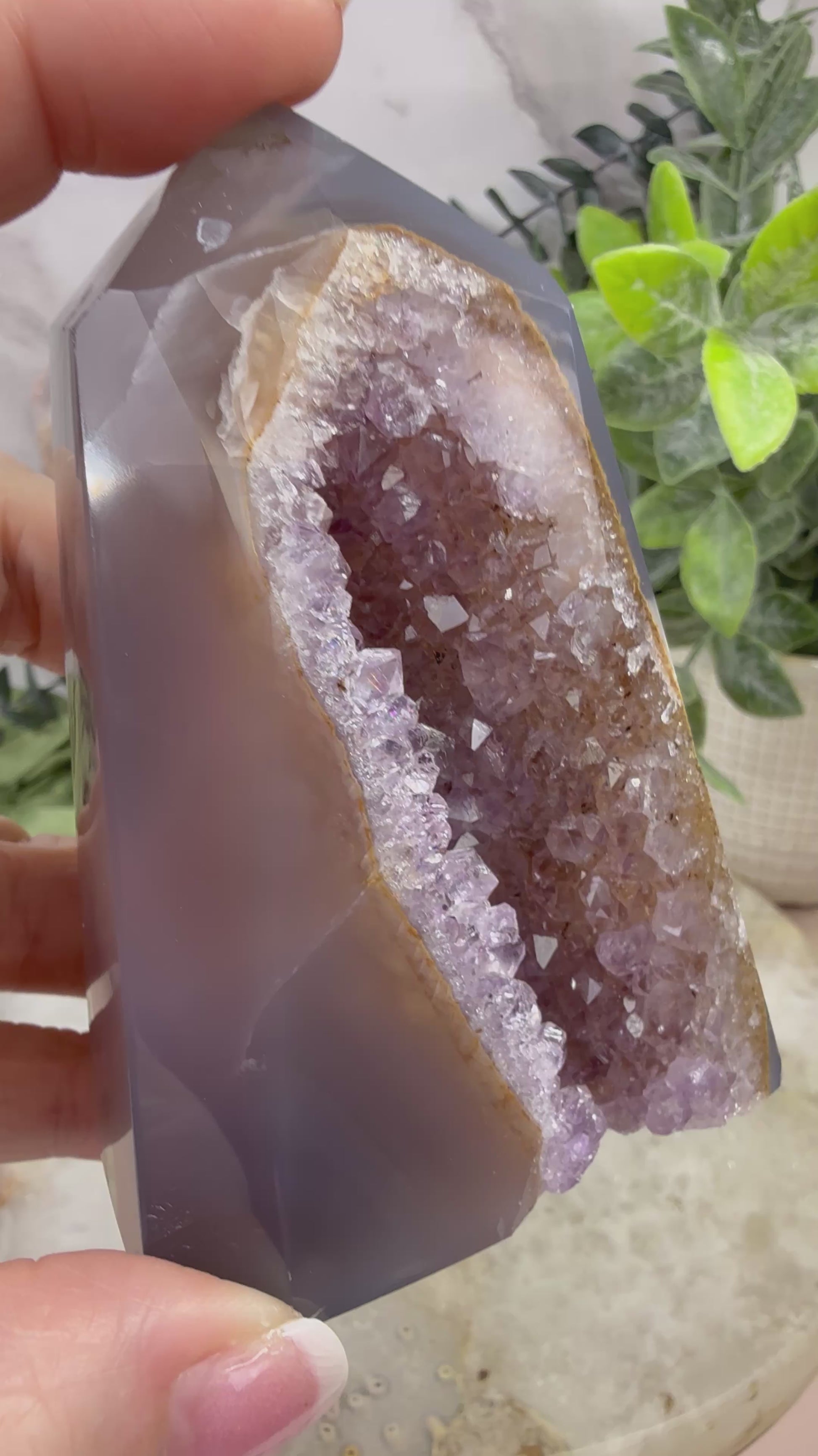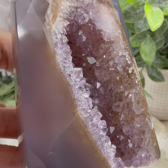 Indulge in the calming energy of our amethyst blue agate tower. The natural amethyst agate is a stunning addition to any room, and its unique shape adds a touch of elegance. Enjoy the benefits of its soothing powers, promoting relaxation and balance. Perfect for any crystal collection!