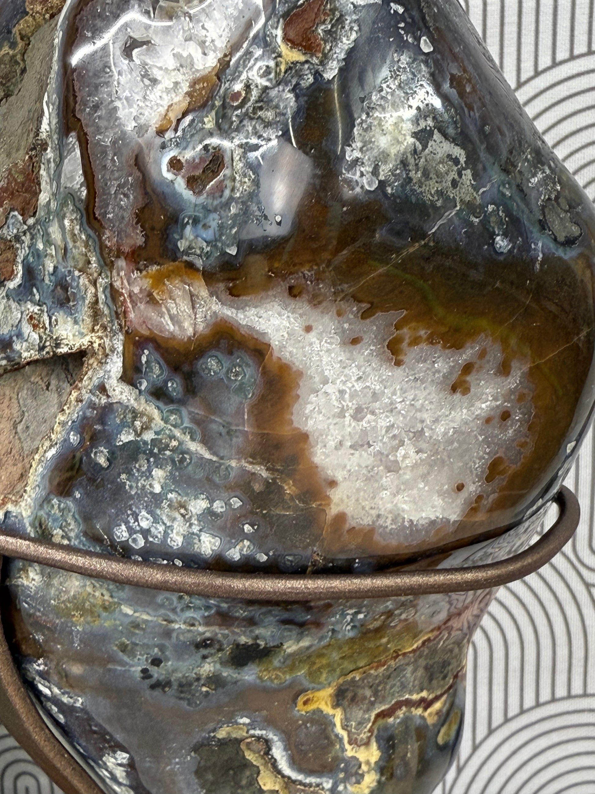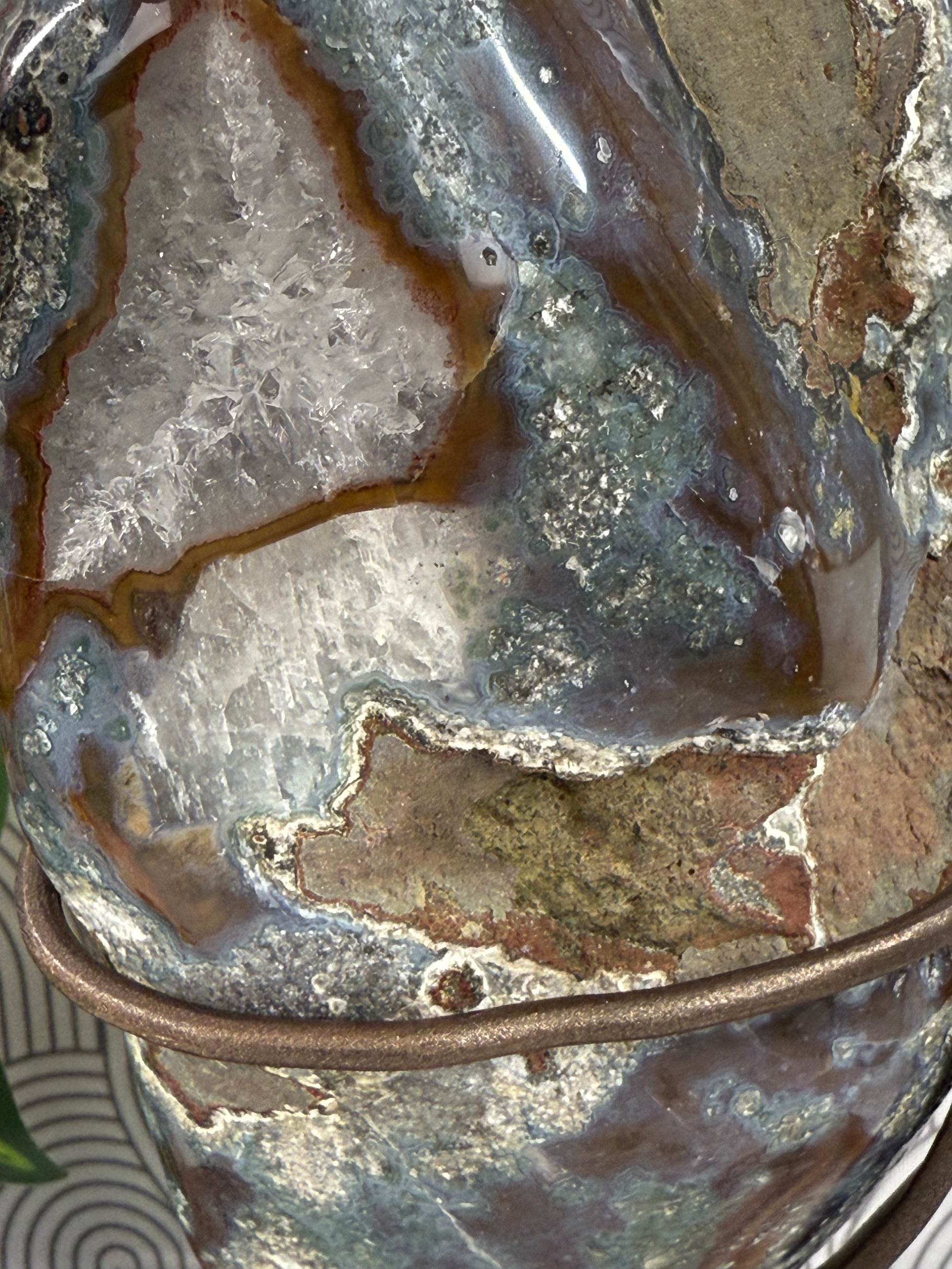 ✨🍃💜Beautiful amethyst geode on custom spinning stand from Uruguay. Fully polished with a uv reactive calcite and quartz windows. #amethyst #crystals #geode #crystalshop #uvreactivecrystals