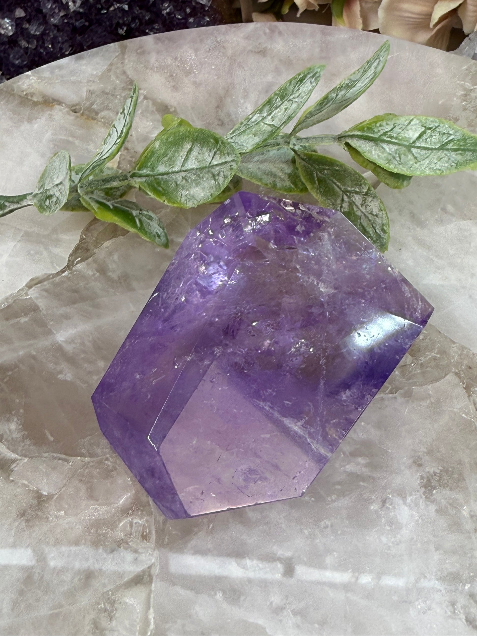 This rare Rose de France amethyst is sourced from Bahia, Brazil and features a unique freeform shape. With its vibrant color and rare origin, this gemstone is perfect for those looking for a one-of-a-kind piece to add to their collection.