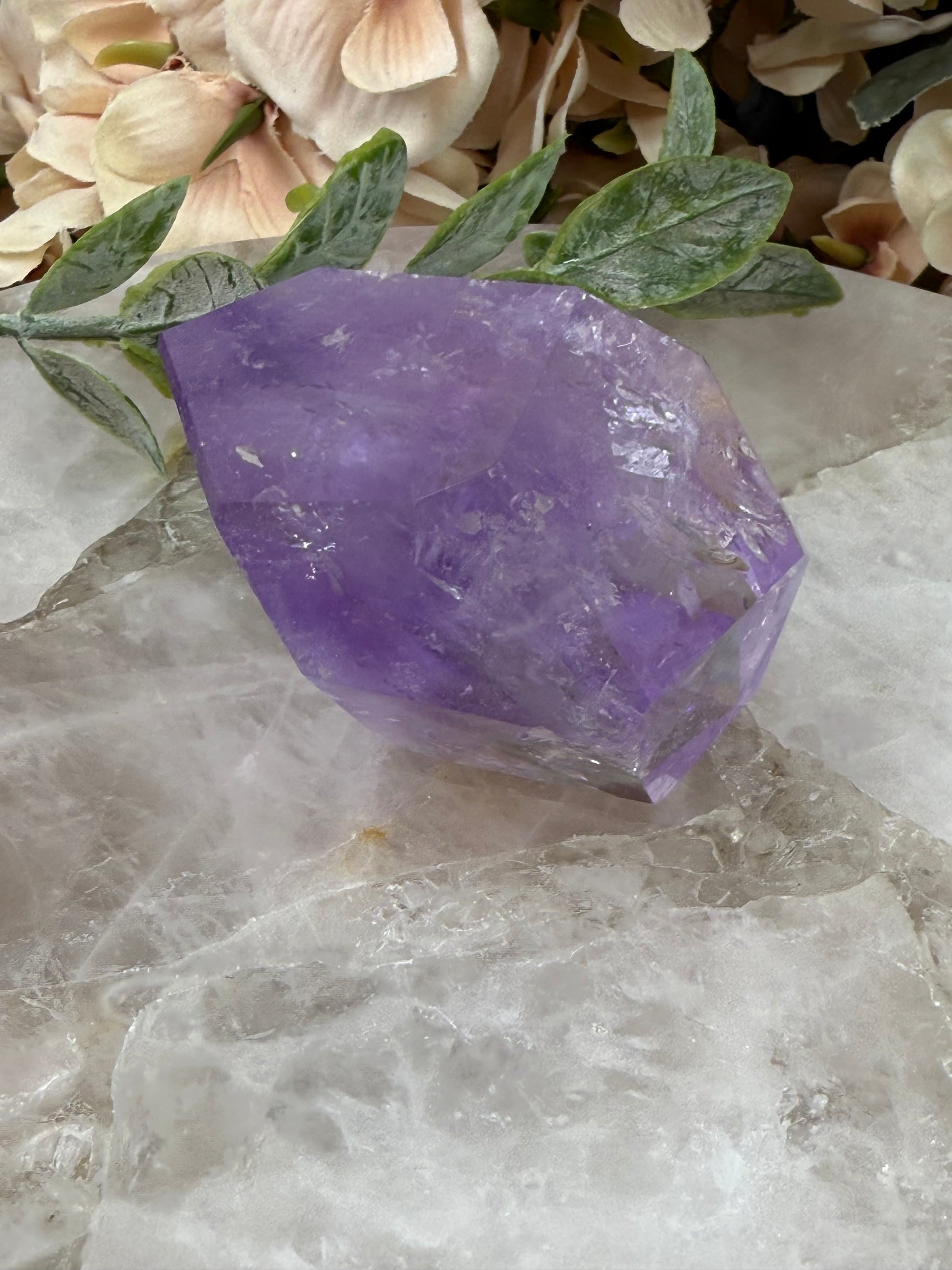 This rare Rose de France amethyst is sourced from Bahia, Brazil and features a unique freeform shape. With its vibrant color and rare origin, this gemstone is perfect for those looking for a one-of-a-kind piece to add to their collection.