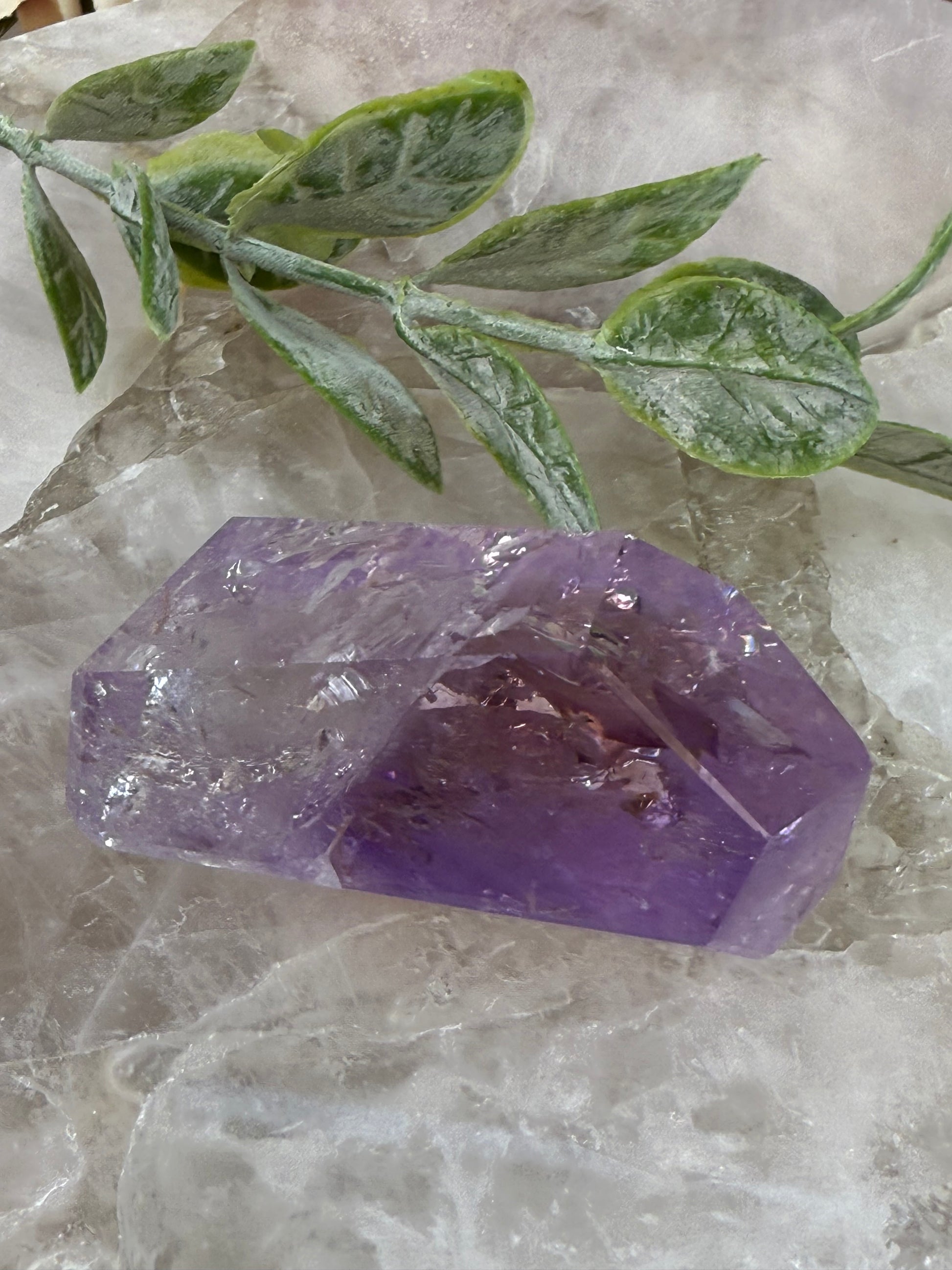 This rare Rose de France amethyst is sourced from Bahia, Brazil and features a unique freeform shape. With its vibrant color and rare origin, this gemstone is perfect for those looking for a one-of-a-kind piece to add to their collection.